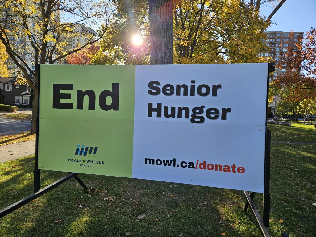 To mark the launch of the campaign, a large “End Senior Hunger” sign has been installed in front of the organization’s headquarters on Queens Ave. Supporters can donate online at www.mowl.ca/donate.