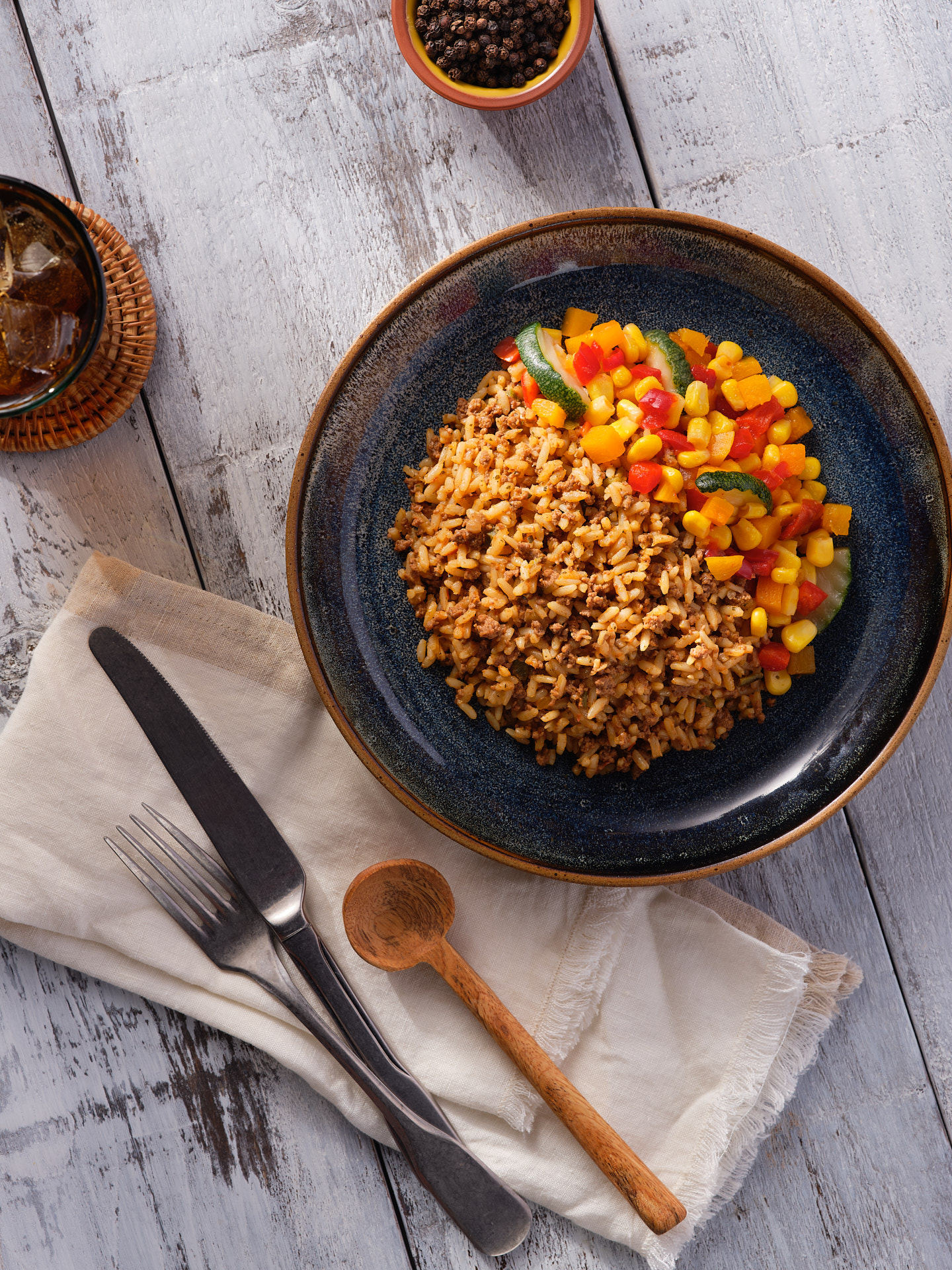 Fluffy brown rice and tender ground beef in a Spanish spice blend, served with a side of mixed vegetables. Low Calorie. Low Sodium. Low Saturated Fat.