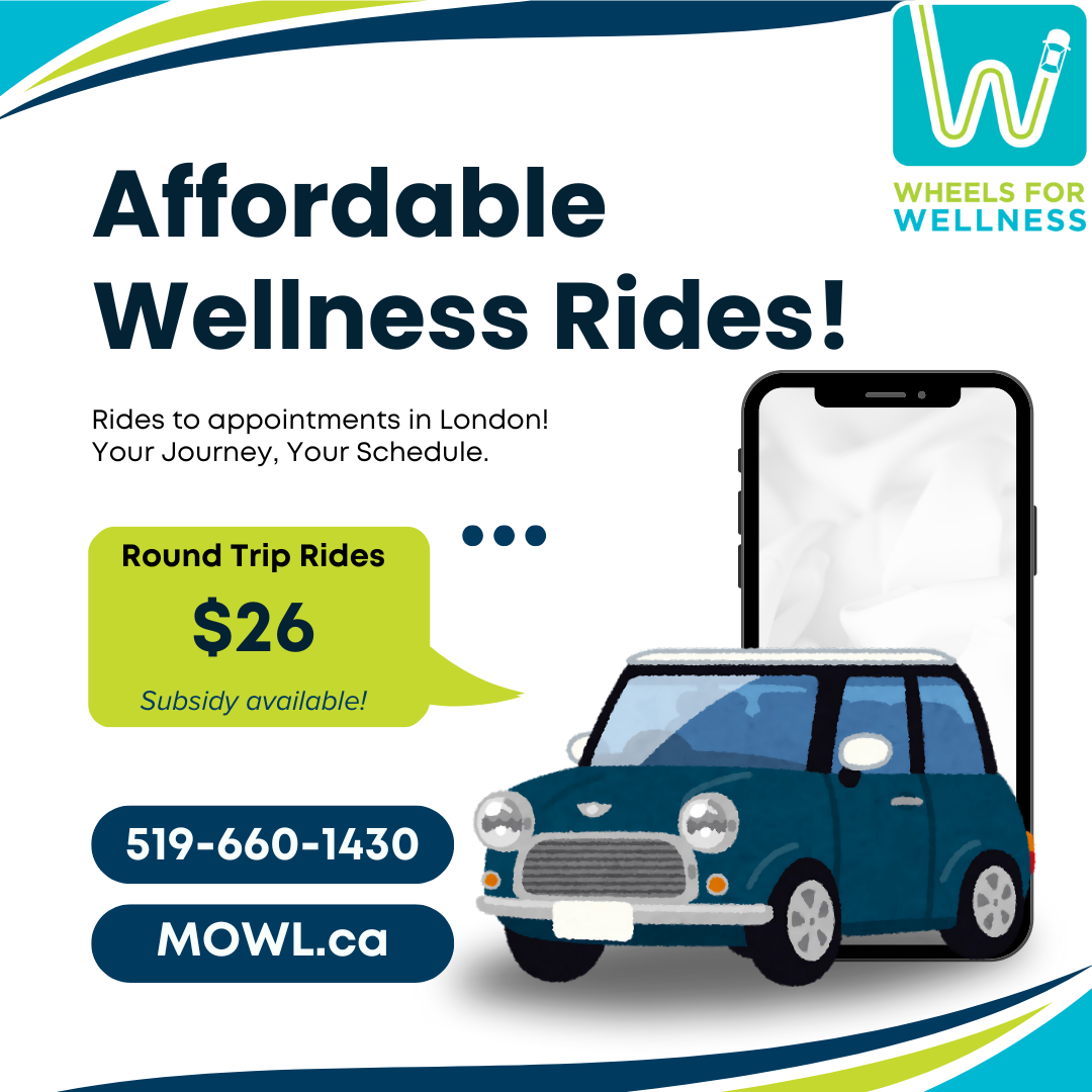 Meals on Wheels London’s “Wheels for Wellness” service provides safe, reliable, and affordable non-emergency transportation for adults 55+, as well as adults 18+ with disabilities. We help you get to your wellness and medical appointments on time, so you never miss essential care.